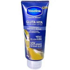 لوسیون بدن شب وازلین مدل Vaseline Gluta-Hya Serum Burst Lotion Overnight Radiance Repair حجم 300 میلیلیتر