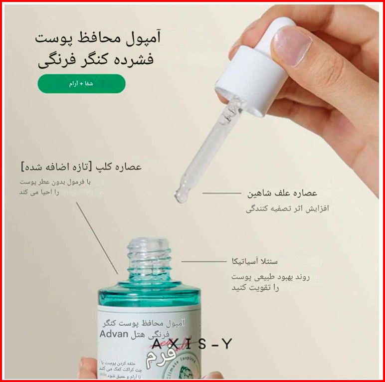 آمپول ضد جوش و محافظ پوست آرتیشو اکسیس وای با حجم 30 میلیلیتر، محصولی پیشرفته از برند AXIS-Y است. این آمپول با فرمولاسیون غنی از عصاره آرتیشو، به تقویت سد دفاعی پوست کمک کرده و التهابات را کاهش میدهد. مناسب برای انواع پوست، این محصول با بافت سبک و جذب سریع، تجربهای دلپذیر را ارائه میدهد.
