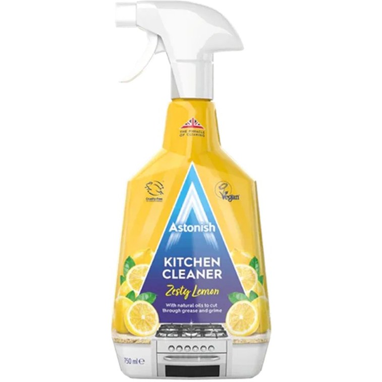 بستهبندی 750 میلیلیتری اسپری باعث میشود مدت زمان طولانی بتوانید از آن استفاده کنید و به لطف طراحی ارگونومیک افشانه، پاشش مایع به راحتی و به طور یکنواخت روی سطوح انجام میشود. اسپری تمیز کننده آشپزخانه آستونیش لیمویی ساخت کشور انگلستان است و کیفیت بالای آن مورد تأیید مصرفکنندگان در سراسر دنیا قرار گرفته است.