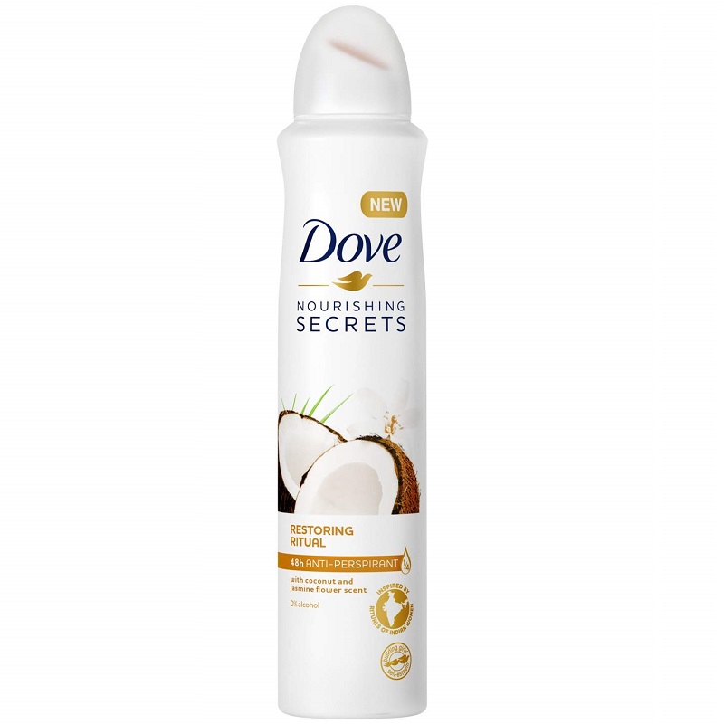 اسپری ضدتعریق زنانه داو Dove Coconut & Jasmine – حجم ۲۵۰ میل | ترکیب رایحه گرم نارگیل و لطافت گل یاس