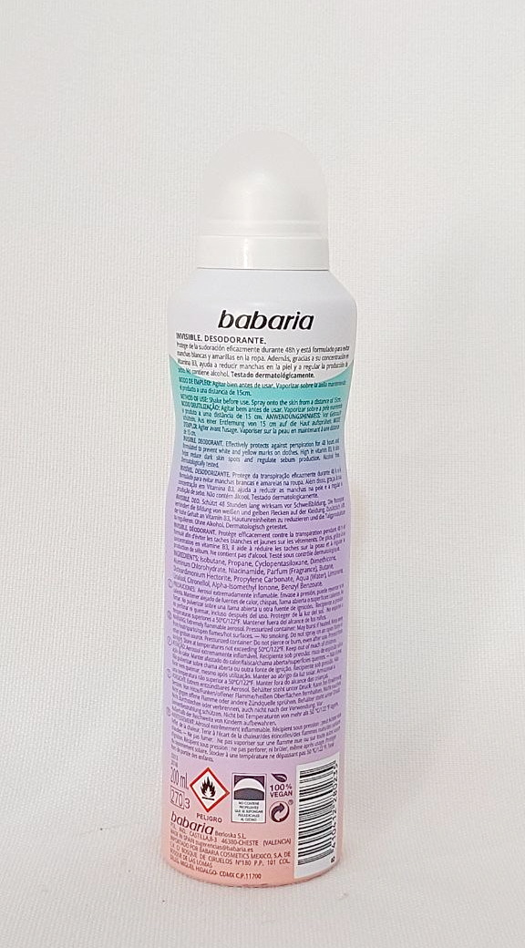اسپری ضد تعریق باباریا مدل اینویزیبل ماندگاری 48 ساعت | babaria invisible 200 ml