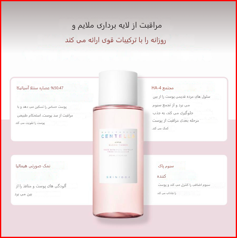 تونر کنترل منافذ سنتلا حاوی عصاره سنتلا آسیاتیکا ضدالتهاب
