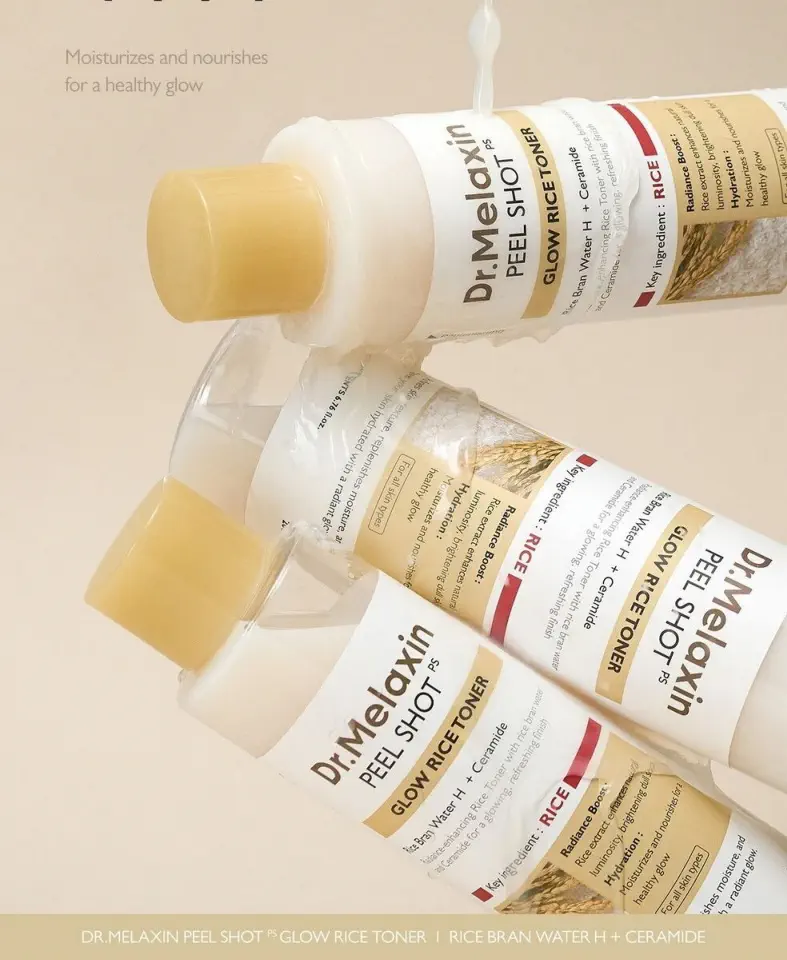 - عضوی از لاین Peel Shot Glow Rice دکتر ملاکسین که برای دستیابی به پوست شفاف، یکنواخت و درخشان، در کنار آمپول و سایر محصولات این خط پیشنهاد میشود.