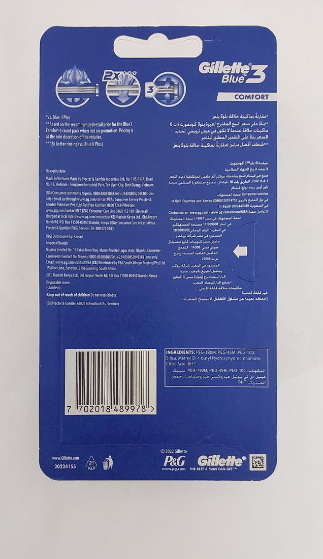 برچسب: Gillette, Gillette Blue 3, Gillette Comfort, تیغ ژیلت, تیغ سه لبه, تیغ یکبار مصرف ژیلت, ژیلت آلمانی