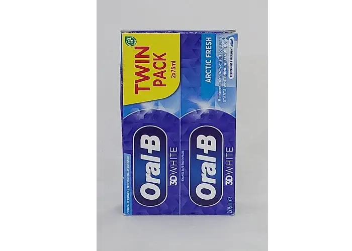 خمیردندان اورال-بی ۳D وایت ۷۵ میل ( Oral-B 3D White Twin Pack 2×75 ml ) پک دوتایی یک محصول تخصصی برای سفید کردن دندانها و حفظ سلامت دهان و دندان است. این خمیردندان با فرمولاسیون پیشرفته حاوی ذرات میکرو-پاک کننده (Micro-Cleansing Crystals) است که به طور مؤثر لکه های سطحی ناشی از مصرف قهوه، چای، شراب قرمز، و غذاهای رنگی را از بین میبرد و مینای دندان را بدون آسیب رساندن به آن سفید میکند.