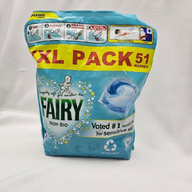 قرص ماشین لباسشویی Fairy مدل Non Bio بسته 51 عددی فرمول بدون آنزیم – ملایم برای پوست حساس