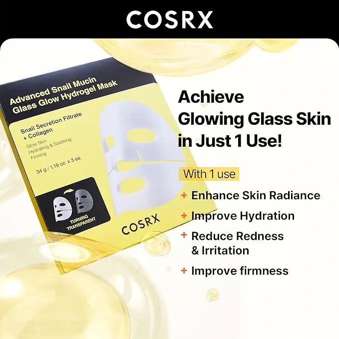 ماسک آبرسان حلزون و کلاژن کوزارکس | COSRX Glass Glow Hydrogel Mask 3 ea