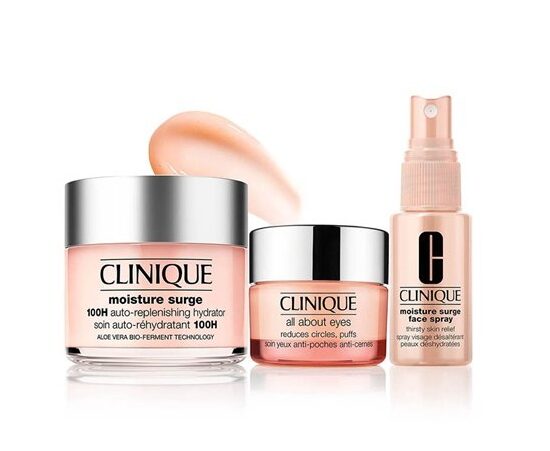 پک مراقبت از پوست کلینیک مدل Moisture surge یک مجموعه جامع و کامل از محصولات مراقبت از پوست ارائه شده توسط برند معتبر Clinique است. این پک شامل یک آبرسان 100 ساعته، کرم مرطوبکننده دور چشم و اسپری آبرسان مخصوص صورت است.
