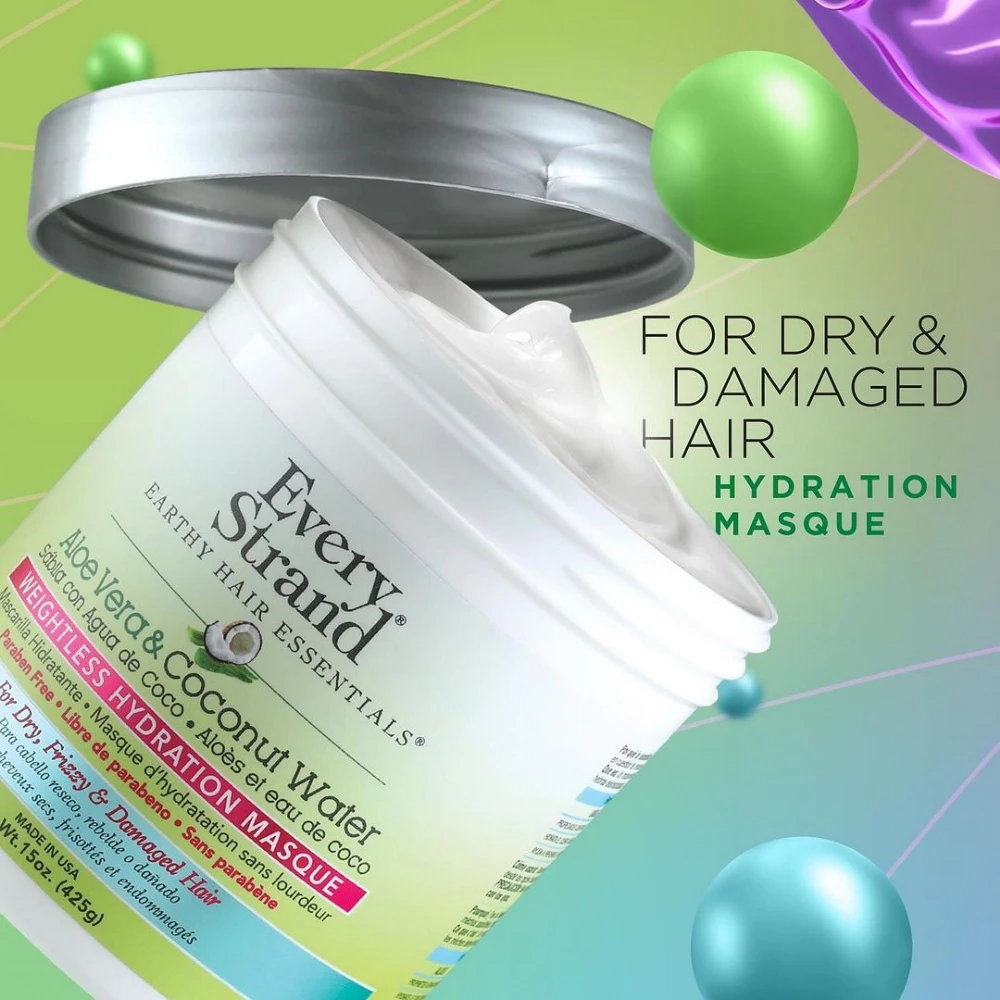 ماسک مو آبرسان آلوئه ورا و آب نارگیل اوری استرند | Every Strand aloe vera coconut water – weightless hydration hair masque 425g