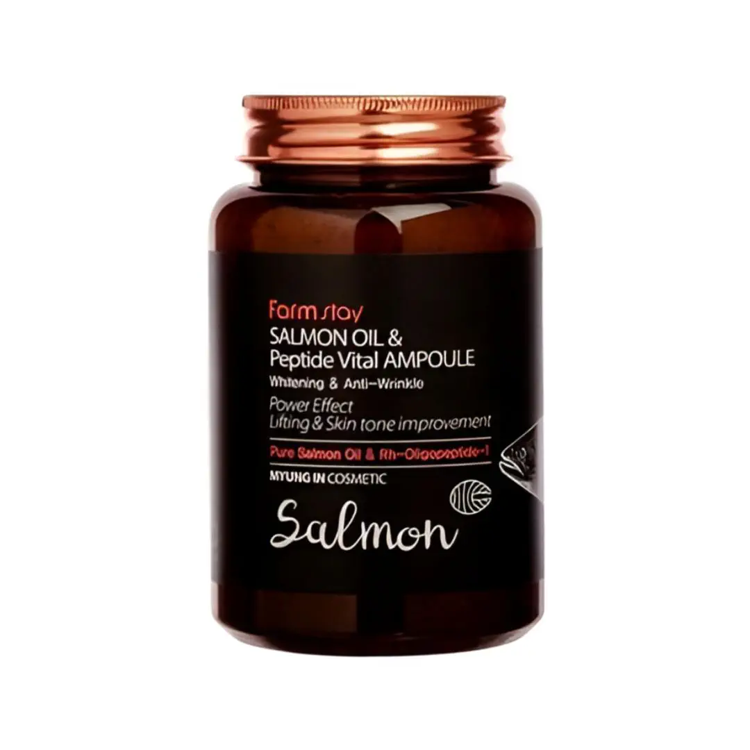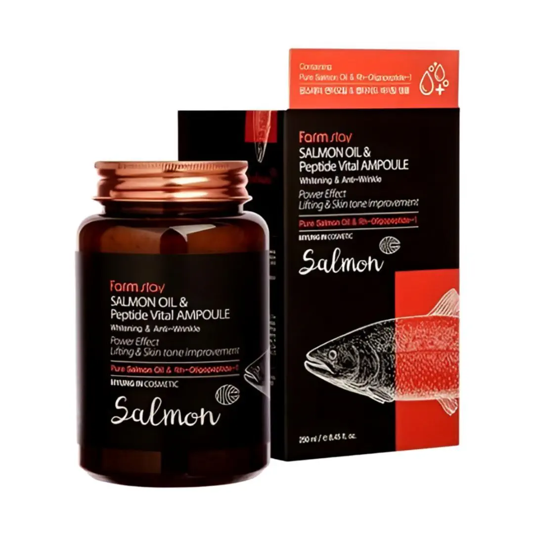 سرم آمپولی روغن سالمون و پپتاید فارم استی Farm stay SALMON OIL & Peptide Vital AMPOULE محصولی 250 میلیلیتری است که پوست را روشن و سفت میکند. با روغن سالمون و پپتاید، جوانی پوست را بازمیگرداند.